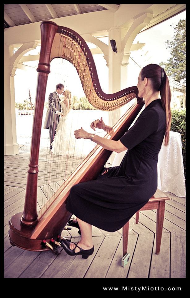 You know how sometimes in life you are lucky enough to meet some REALLY great and interesting people? Well, that’s what happened to me the day I met Christine MacPhail. Christine is not only a wonderful person, she has (in my opinion) one of the coolest jobs EVER. No office grind for this lady! Christine owns her own business and has made her living as a harpist for the past 25 years. One of her favorite places to play is Disney World. Specifically she has played the harp for Victoria and Albert‘s in the Grand Floridian Resort, and for dozens of Disney weddings all over the property (not to mention the state of Florida). I asked Christine what she loves most about Disney weddings. She was happy to answer, and even threw in some advice for Disney brides.