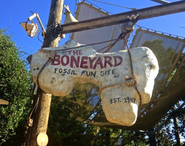 One of my favorite examples of this is also among the most easily overlooked—especially if you are visiting without a young child in tow. I’m talking about The Boneyard playground in the Dinoland U.S.A. section of Disney’s Animal Kingdom. You may think The Boneyard is all kid’s stuff…but you’d only be half right, because it’s also an example of Disney themed storytelling at its finest.