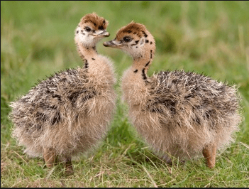 Something for old and young here. During the big opening song, if you look closely, you will see little speckled baby ostriches running around. They look something like this.