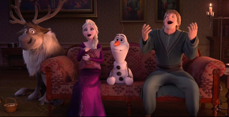 One of the opening scenes includes Olaf and the crew playing charades. It is as cute as you can imagine. Olaf does a fantastic impersonation of Elsa, and even SHE giggles at his cuteness.