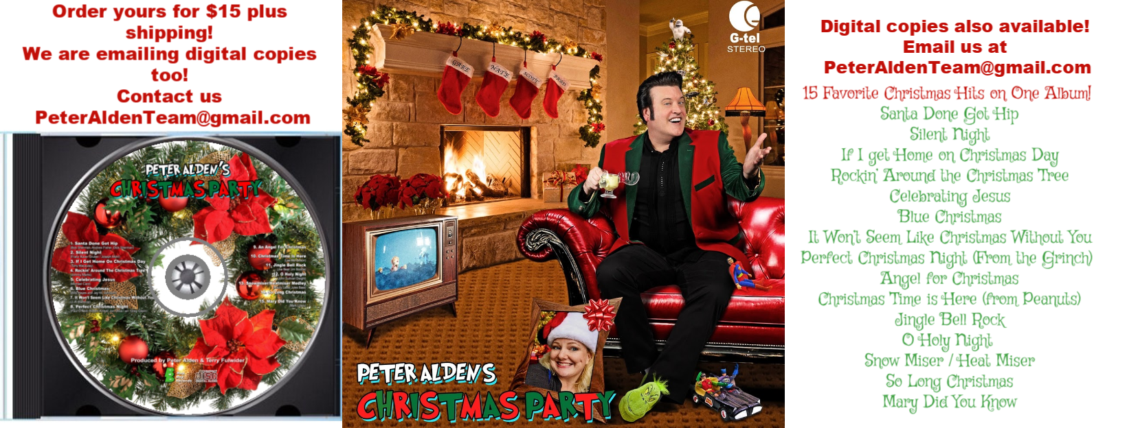 The wait is over!! Peter Alden’s first Christmas album in SEVEN years – is here. We invite you to join “Peter Alden’s Christmas Party” and order this album as a gift for yourself and maybe a few more copies to give to your friends who (you may have thought!) already have everything. Designed to delight everyone on Santa’s list – it is a wonderful mix of – FIFTEEN songs in all – requested by Pete’s fans!