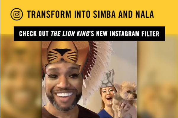New Instagram filter!! Type “Simba and Nala” in the browse effects or take a look in the effects tab on the Instagram profile page @TheLionKing to try it on yourself!