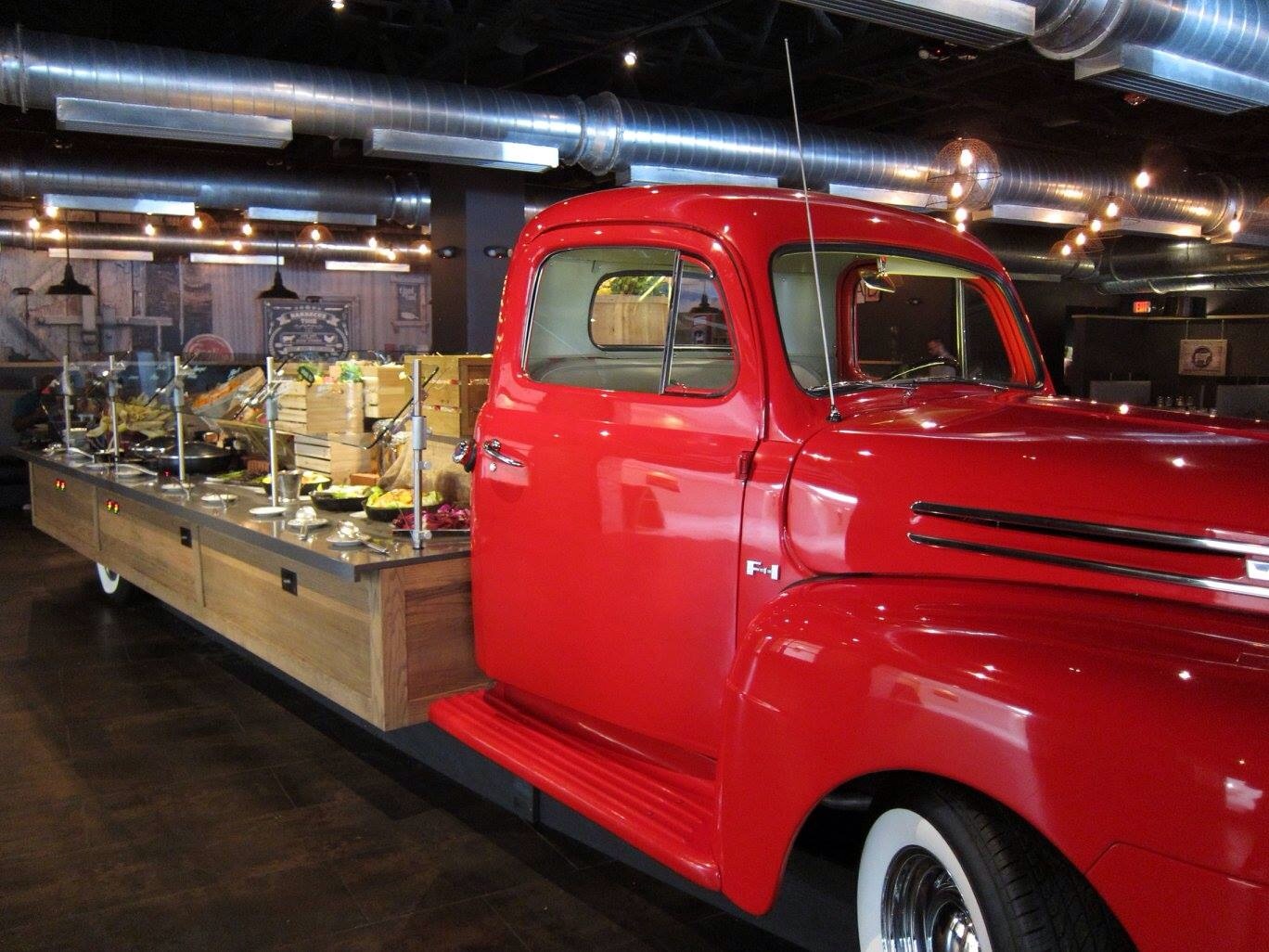 It all starts with the ’51 Ford F1 Flatbed Truck Buffet. How cool is that?!