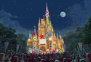 Disney announced yesterday they will have a new scene for the summer where Cinderella Castle will turn in to a giant sandcastle. Here’s a picture they released to kind of give us a sneak peek.